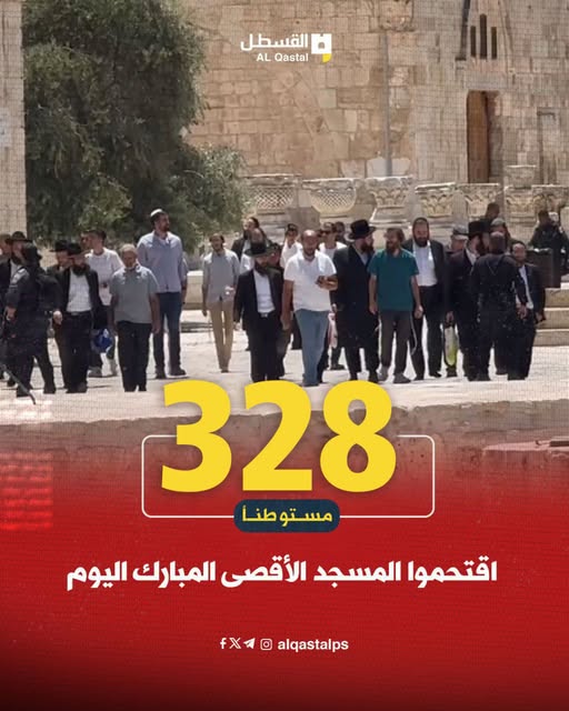 According to al-Qastal News, at least 328 Jewish settlers entered the Mosque through its Maghariba Gate and toured its courtyards under police protection.