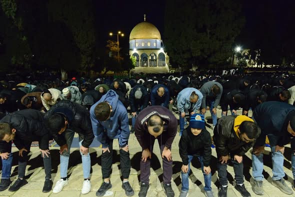 OCCUPIED JERUSALEM, (Palestine Foundation Information Center), After air raid sirens sounded at 8:00 p.m. on Monday in Occupied Jerusalem and areas inside Israel, marking the start of “Memorial Day” commemorations, observed by Israelis to honor soldiers killed in their wars, the call to the evening (Isha) prayer was absent from Aqsa Mosque, as worshippers in its courtyards and nearby residents did not hear it.