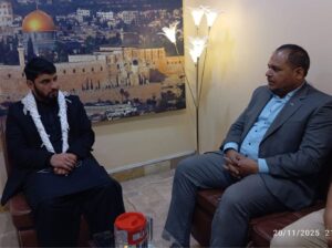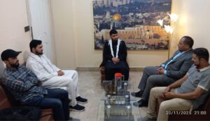 The Central President of Imamia Students Organization (ISO) Pakistan, Amin Shirazi, along with his delegation, called on Dr. Sabir Abu Maryam, Secretary General of Palestine Foundation Pakistan (PLF), on Thursday. The meeting focused on strengthening joint efforts for the Palestinian cause amid intensifying global challenges.